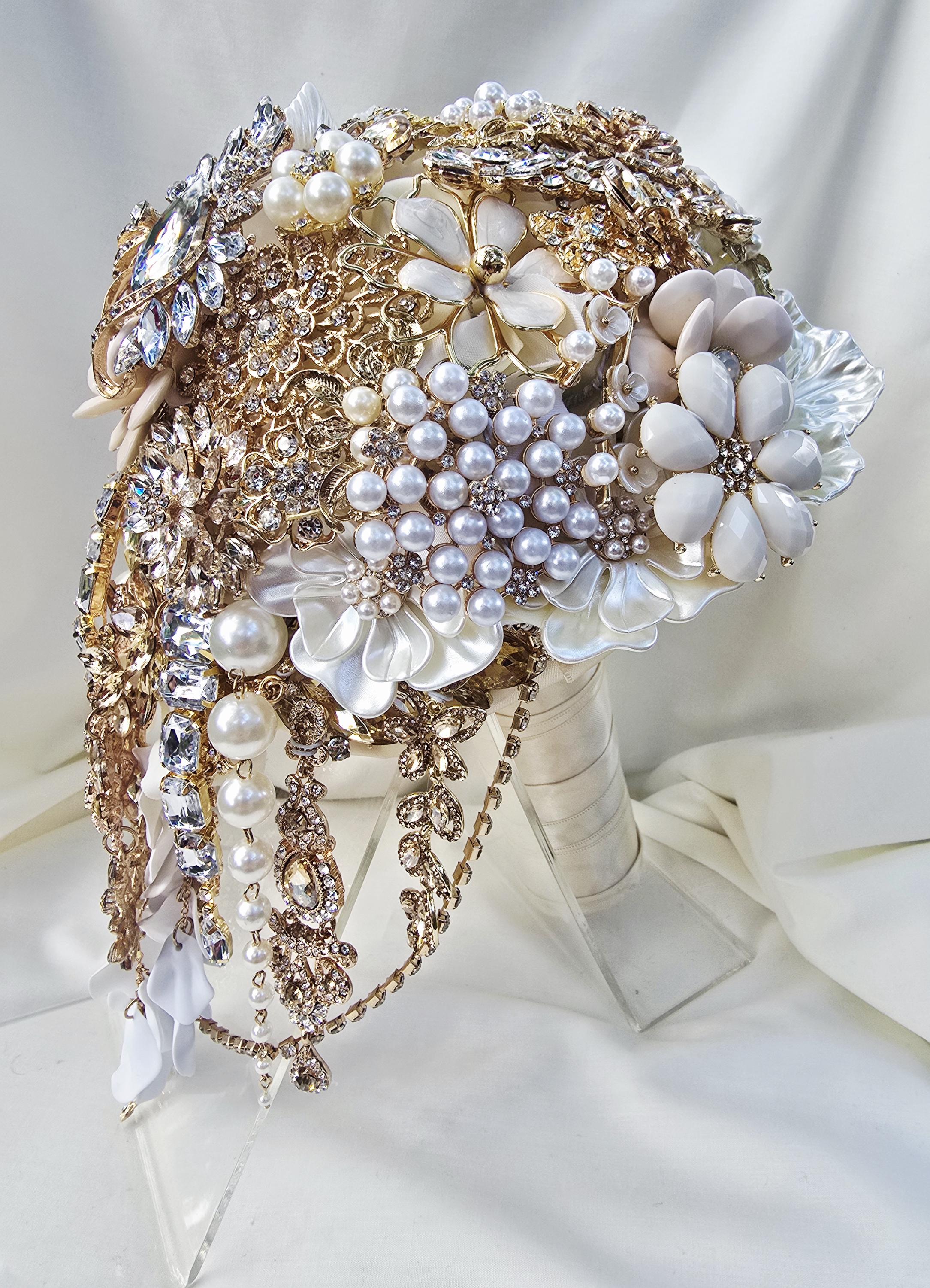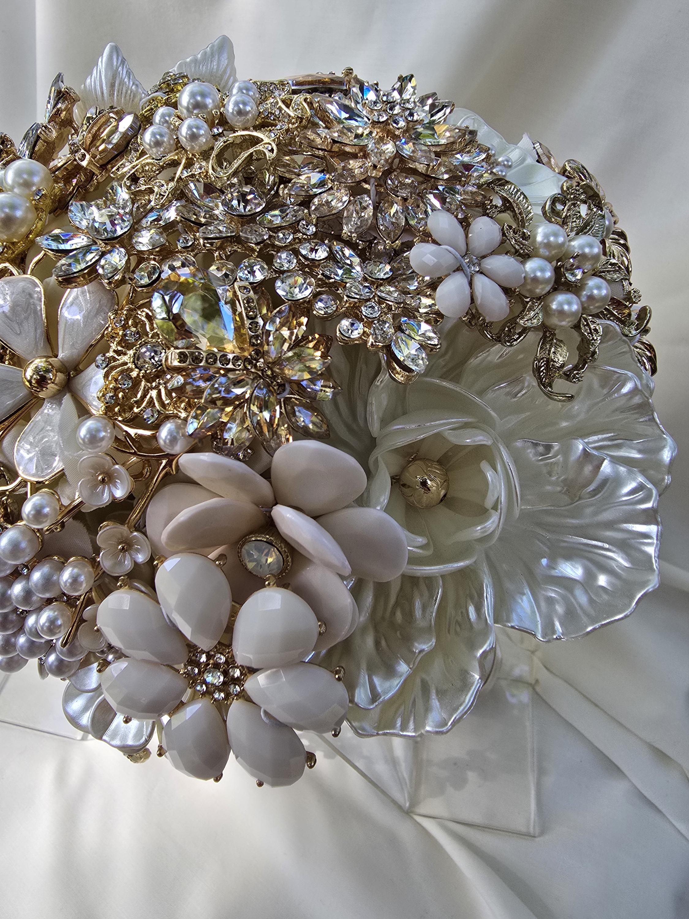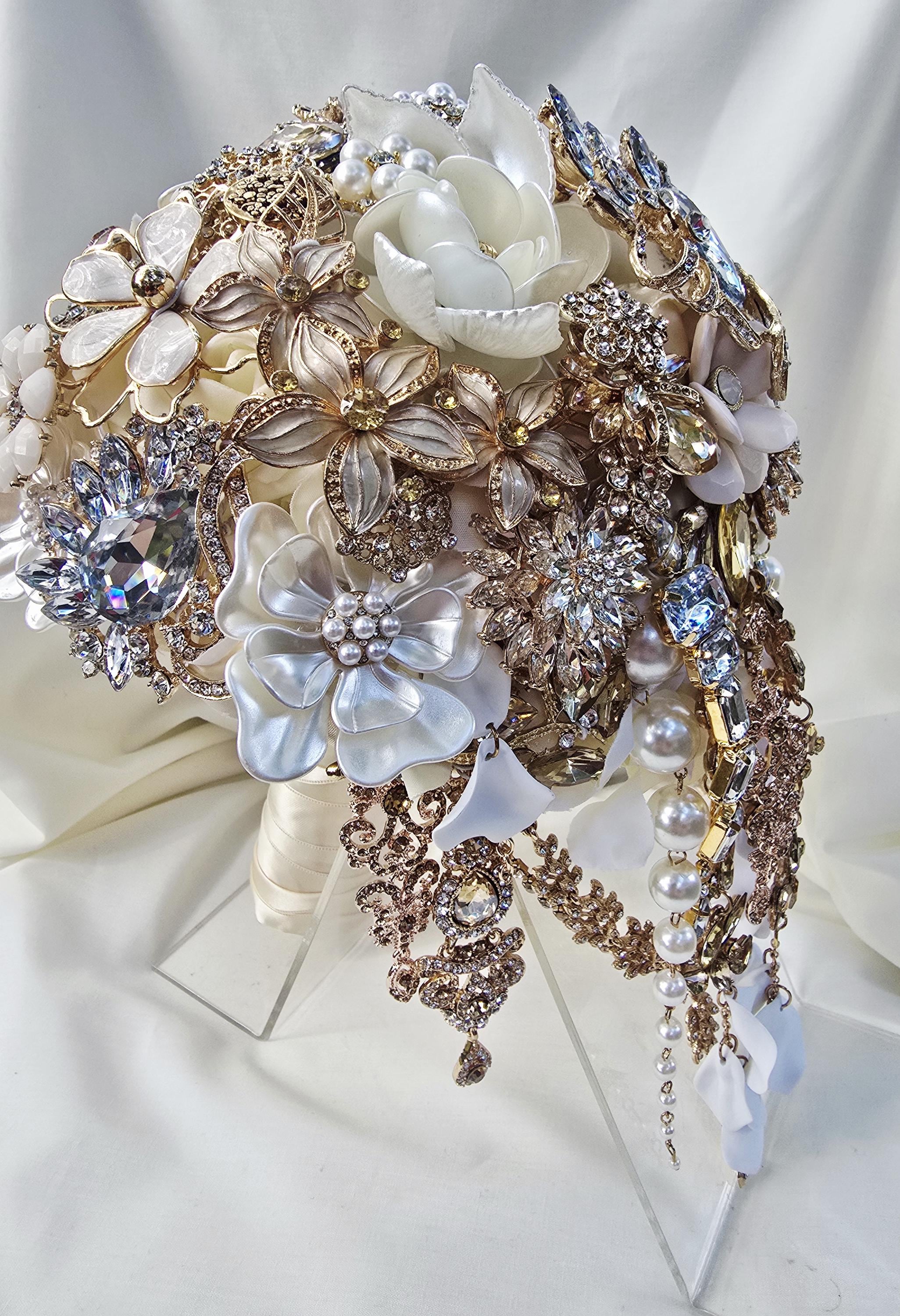 This listing is for a Ready to Ship as is 12 inch diameter brooch bouquet. Please view all the photos carefully and let me know if you have questions before purchasing.
