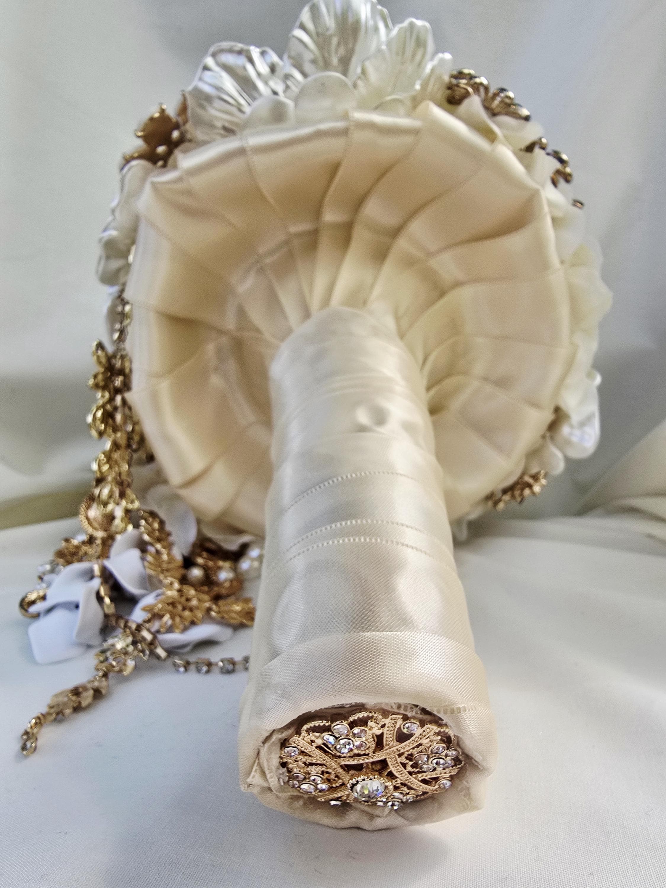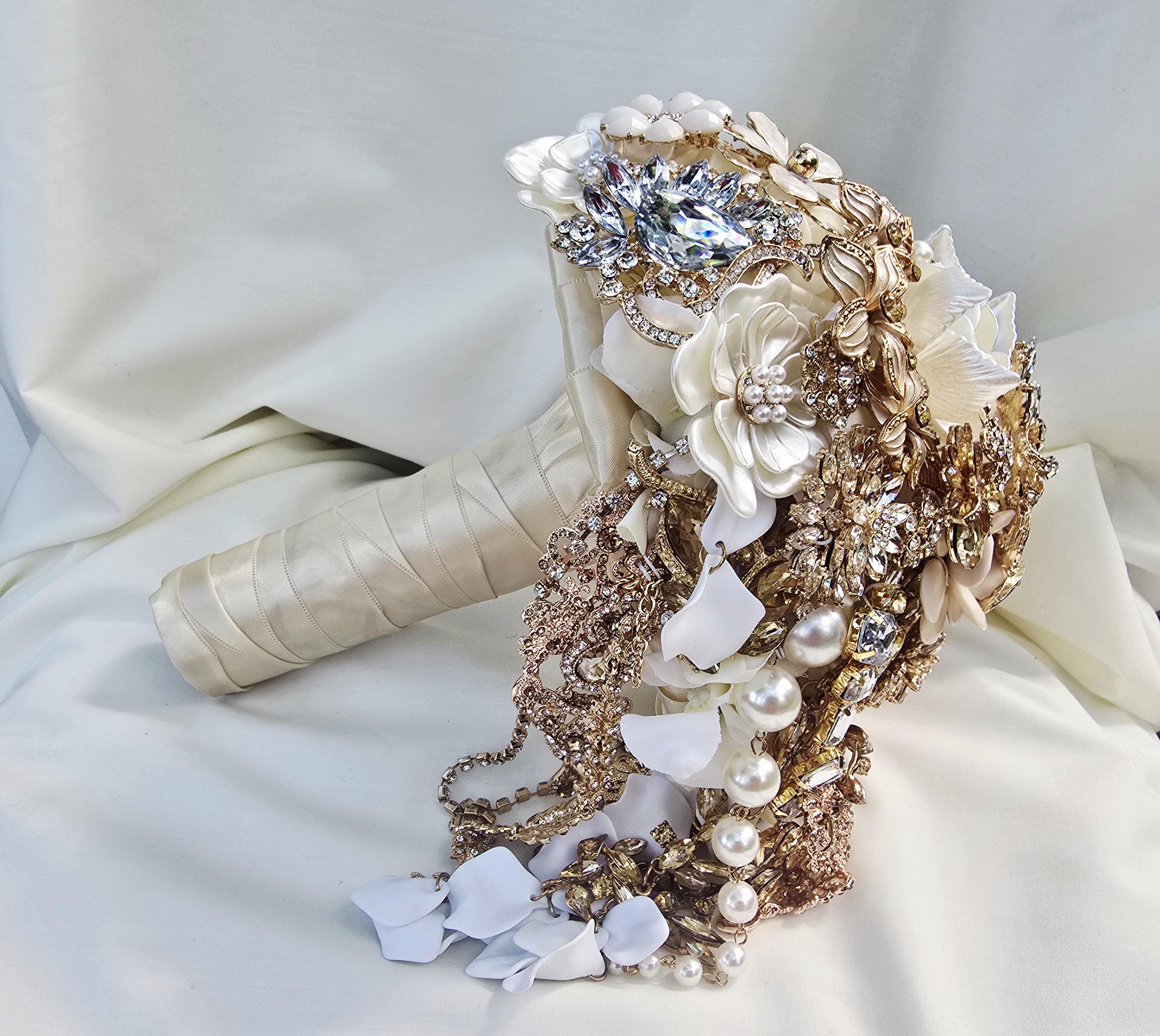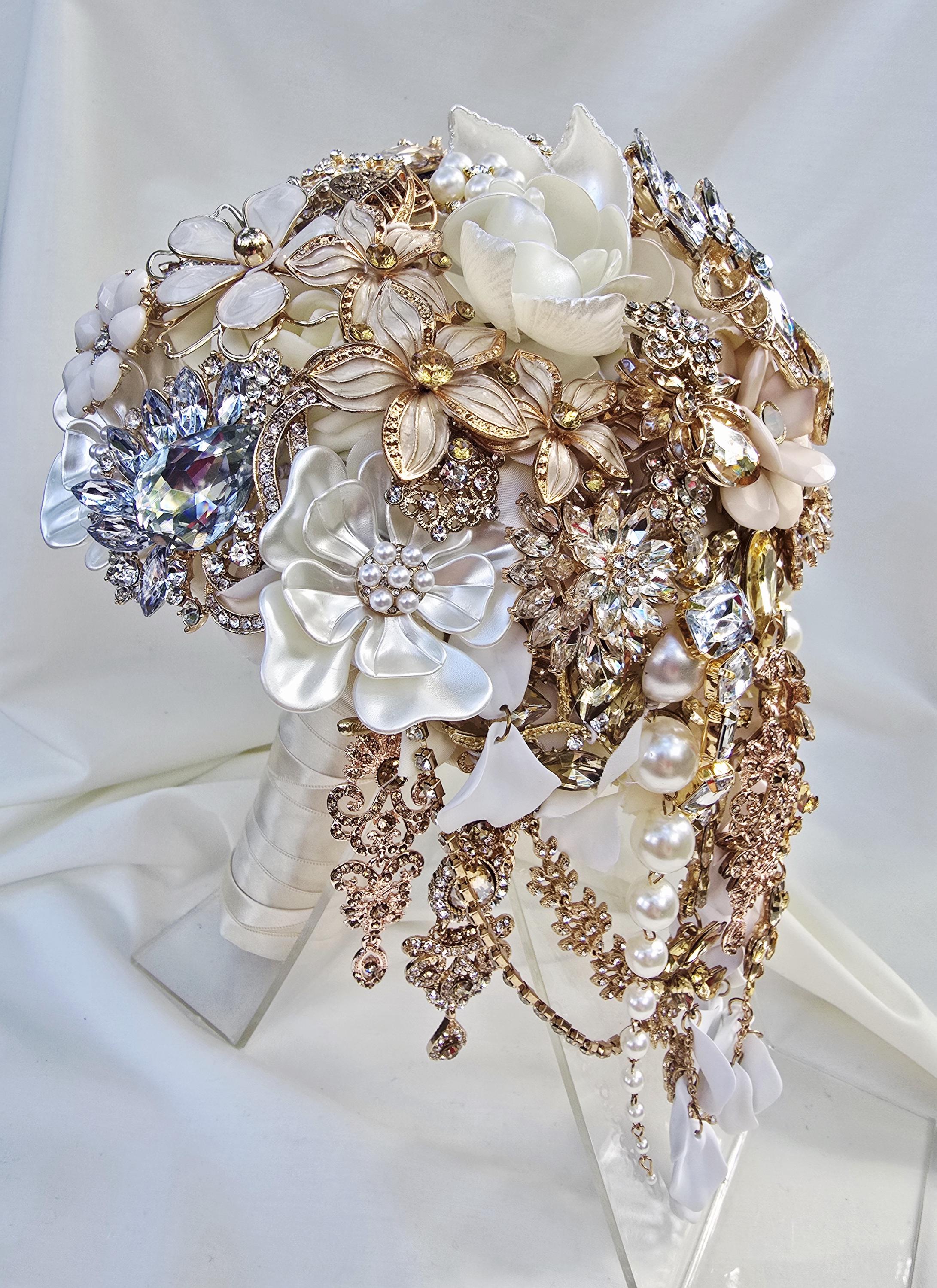 This listing is for a Ready to Ship as is 12 inch diameter brooch bouquet. Please view all the photos carefully and let me know if you have questions before purchasing.